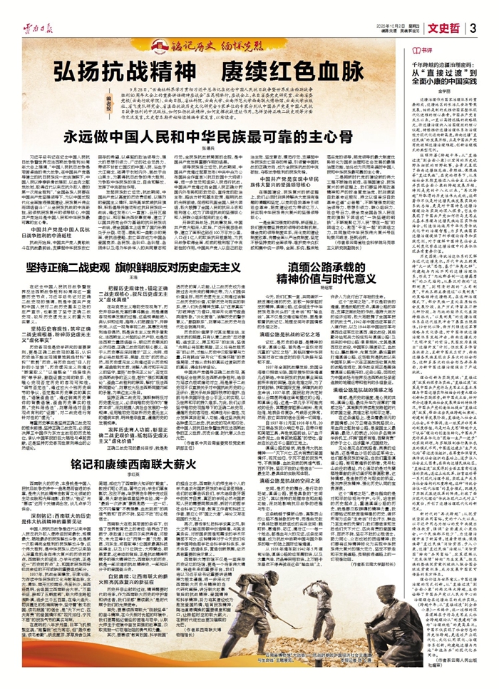 习近平总书记在纪念中国人民抗日战争暨世界反法西斯战争胜利80周年大会上强调,“中国人民抗日战争是艰苦卓绝的伟大战争。在中国共产党倡导建立的抗日民族统一战线旗帜下,中国人民以铮铮铁骨战强敌、以血肉之躯筑长城,取得近代以来反抗外敌入侵的第一次完全胜利”,“全国各族人民要在中国共产党坚强领导下,为以中国式现代化全面推进强国建设、民族复兴伟业而团结奋斗!”从全民族抗战的中流砥柱,到领航民族复兴的领导核心,中国共产党始终是中国人民和中华民族最可靠的主心骨。