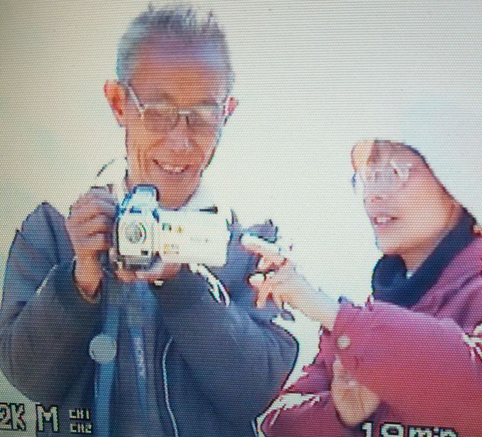 刘文增老师学习使用摄像机。图片来自2000年素材的截图。