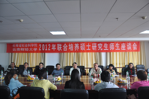 2012年9月29日上午,“云南省社科院与云南财经大学联合培养硕士研究生师生见面会”在我院18楼大会议室隆重举行。会议由院长助理兼院培训部主任董棣研究员主持,云南财经大学研究生处副处长王旭教授作了主题讲话。我院硕士导师代表郑宝华研究员、黄小军研究员、陈利君研究员、马勇研究员、张体伟研究员等,与2012年新入学的“院校联合培养”的11位硕士生进行了见面座谈。