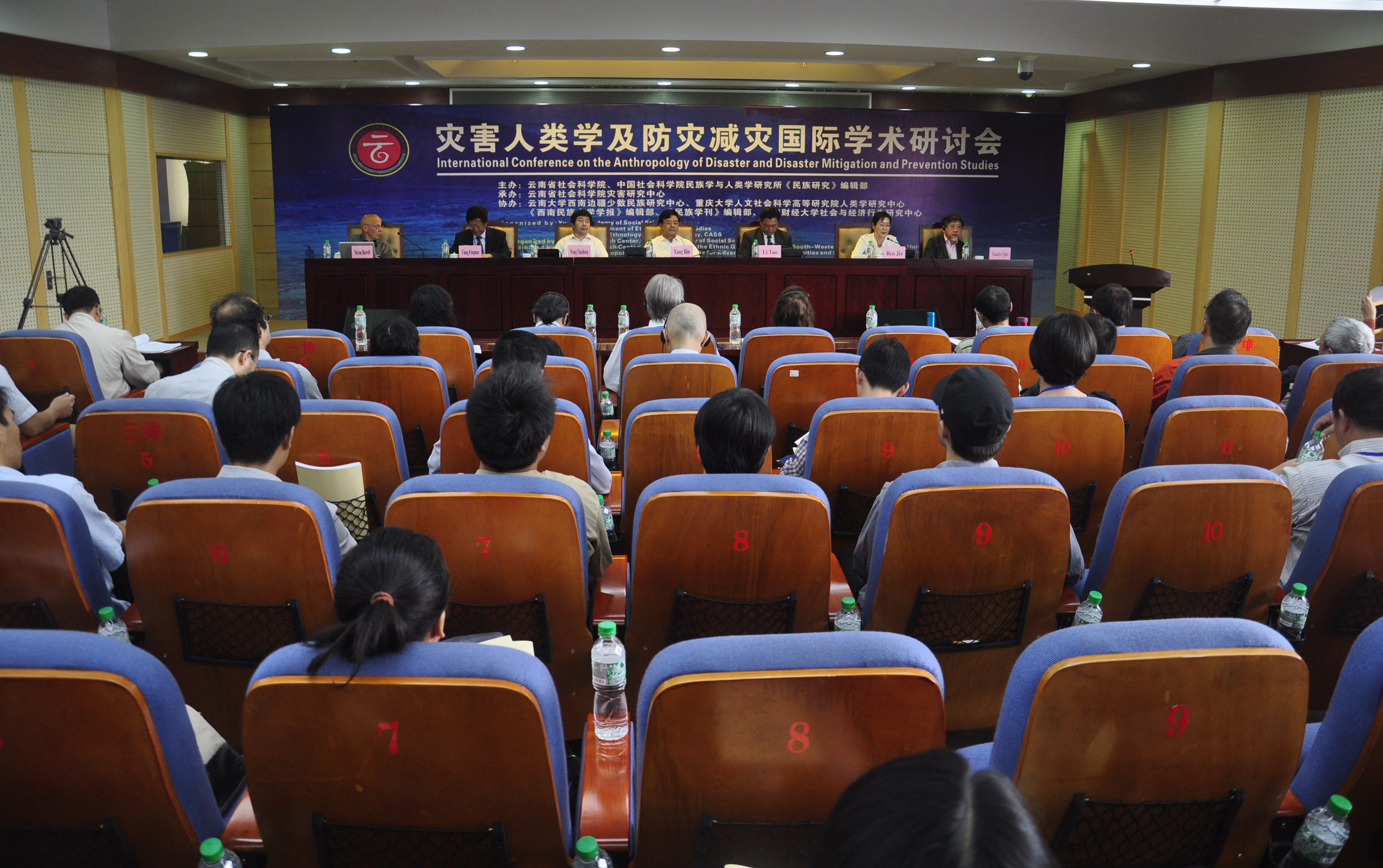 2013年8月21日,首届“灾害人类学及防灾减灾国际学术研讨会”在我院隆重举行。本次研讨会由云南省社会科学院和中国社会科学院民族学与人类学研究所《民族研究》编辑部共同主办,云南省社会科学院灾害研究中心承办,云南大学西南边疆少数民族研究中心、重庆大学人类学研究中心、《西南民族大学学报》编辑部、《民族学刊》编辑部和云南财经大学社会经济行为研究中心协办。会议开幕式由云南省社会科学院院长任佳主持,云南省政府副秘书长杨斌代表云南省人民政府副省长尹建业讲话,云南省社会科学院党组书记李涛同志和中国社会科学院民族学与人类学研究所所长王延中研究员向大会致辞,来自美国华盛顿大学的Stevan Harrell(郝瑞)教授,日本关西学院大学的Masahiro Ogino(荻野昌弘)教授、佛罗里达大学的Anthony Oliver-Smith教授、加拿大不列颠哥伦比亚大学亚洲研究所的彭文斌教授、美国威斯康辛大学人类学系的周永明教授,长江学者纳日碧力戈教授,以及中国社会科学院《民族研究》编辑部、复旦大学、中山大学、西南民族大学、重庆大学、云南大学、云南财经大学、云南民族大学的八十余位国内外知名学者出席开幕式。