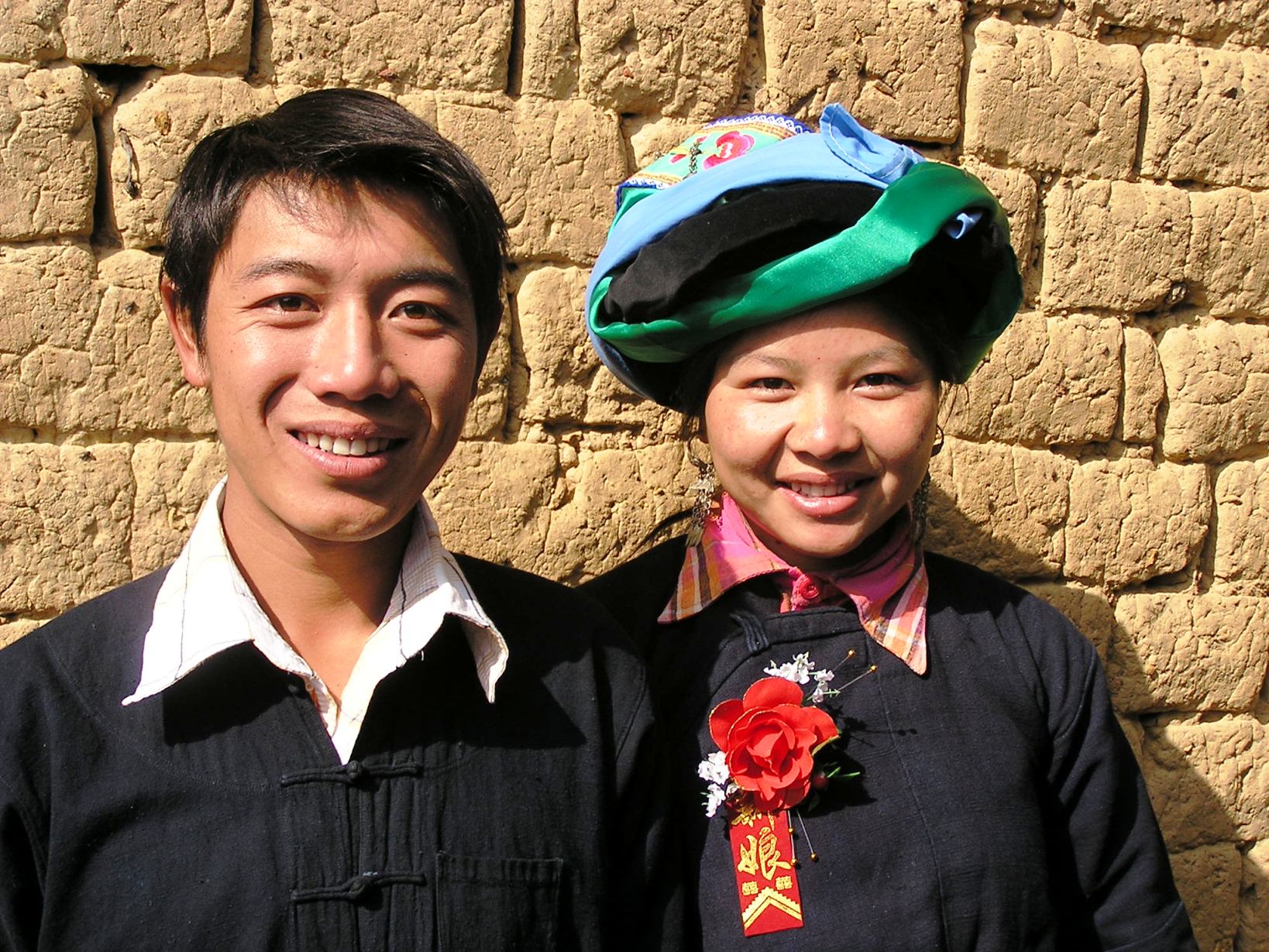 哈尼族豪尼人的青年男女娶嫁成亲,都要大致经历问媳妇(毫迷闹敖)、吃小酒(腊扣茶)、迎娶(毫迷固)、回娘家(阿巴玛阿霍伙哩)等几个阶段。