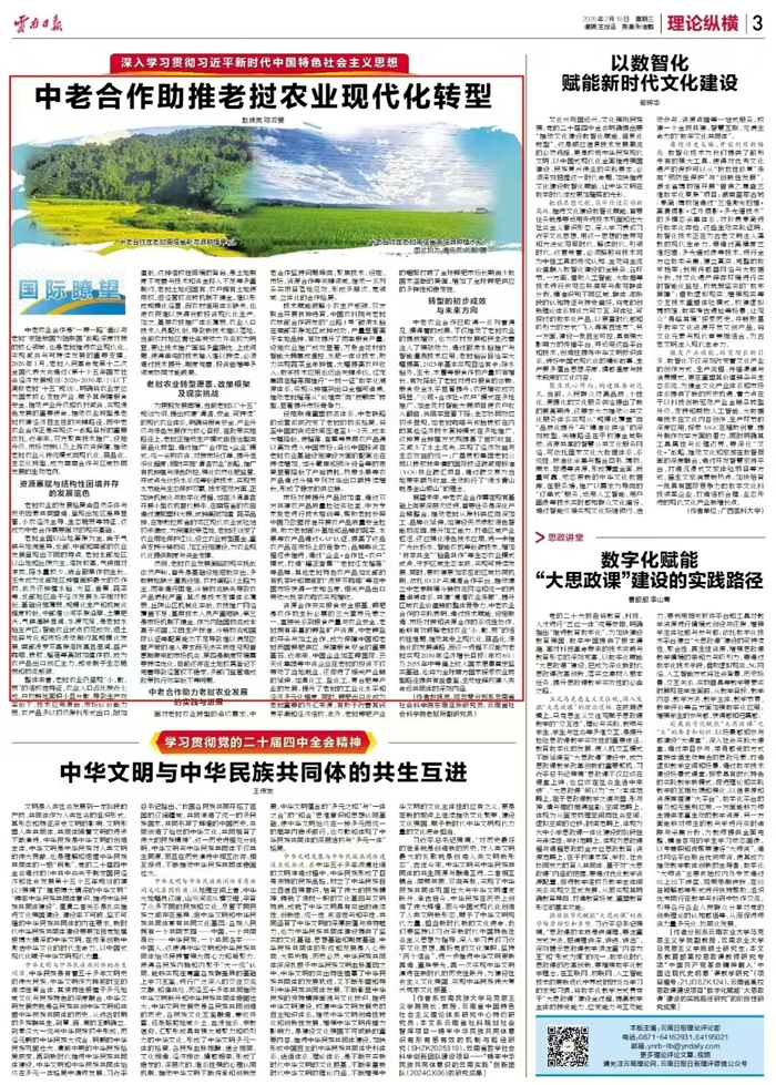 展望未来,中老农业合作需在现有基础上向更深层次迈进,首要任务是深化产业链整合,推动老挝从原料供应向深加工、品牌化延伸,如建设天然橡胶绿色智能物流园,提升加工能力,打造区域产业枢纽。还应强化绿色技术应用,进一步推广光伏扬水、智能农机等低碳技术,增加“林茶共生”“稻鱼共作”等生态农业模式试点,守护区域生态本底,实现可持续发展。同时,要构建更加紧密的区域协同机制,依托RCEP与澜湄合作平台,推动建立中老泰跨境冷链物流网络和统一的质量追溯体系,共建“澜湄农业走廊”,提升区域农业价值链的整体竞争力。中老农业合作的实践表明,通过技术赋能、设施联通、市场对接和资源合作的系统性协作,能够有效破解老挝农业“小、散、弱”的结构性难题,推动其走上现代化、商品化、绿色化的发展道路。而这一进程不仅能为老挝实现2030年经济增长目标(年均6%)及2055年中等偏上收入国家愿景奠定坚实基础,也将为全球南方国家探索农业转型路径提供有益借鉴,生动诠释构建人类命运共同体的深刻内涵。