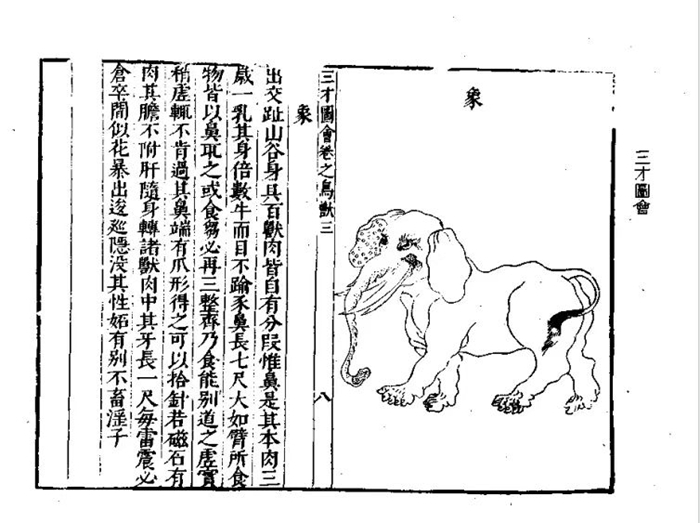 在对亚洲象的具体描述方法上,这种专业化体例带来了描述维度的极大丰富与描述方法的实证化转向。记述不再满足于“有象”或“多象”的简单陈述,而是深入象的形态特征、生理结构、行为习性、实用功能乃至情感表现等多个层面。以万震《南州异物志》中的象条目为例,其载曰:“象,目不逾狶。鼻为口役,望头若尾。驯良承教,听言则跪。素牙玉洁,载籍所美。服重致远,行如丘徙。”这段通过比较观察法(“目不逾狶”)确立大象的体型尺度,通过功能分析法(“鼻为口役”“服重致远”)揭示其器官特性和实用价值,通过行为记录法(“听言则跪”)展现其驯化特征,通过价值评判法(“素牙玉洁,载籍所美”)赋予其文化意义。尤为值得注意的是“鼻为口役,望头若尾”的记录,前者精准概括了大象长鼻的核心功能——替代口和手进行取食、劳作,后者生动捕捉了大象特殊的身体比例造成的视觉印象。这种描述基于细致入微的观察,而非凭空想象或道听途说。它标志着知识生产方式发生了根本转变:从基于传闻的“传书言‘象耕鸟耘’”转向了基于(或力图基于)实证观察的“象之为兽”的知识书写。尽管其中仍可能夹杂传闻成分,但追求客观描述、注重细节真实的方法论取向已清晰可见。