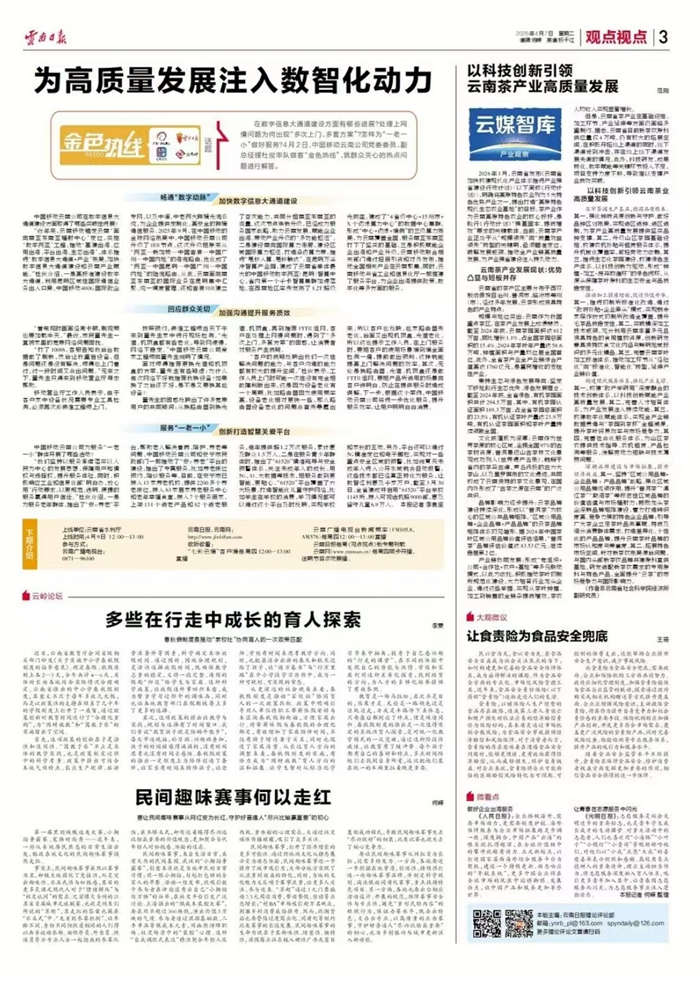 2026年1月,云南省发布《云南省加快构建现代化产业体系推进产业强省建设行动计划》(以下简称《行动计划》),明确将高原特色农业列为5大特色优势产业之一,提出打造“高原特色现代生态农业基地”的目标。茶产业作为云南高原特色农业的核心标杆,是践行《行动计划》“强基固本、提质增效”要求的关键载体。当前,云南茶产业正处于从“规模领先”向“质量效益领先”转型的关键期,亟须瞄准定位,破解发展瓶颈,推动全产业链高质量发展,为产业强省建设注入持久动力。