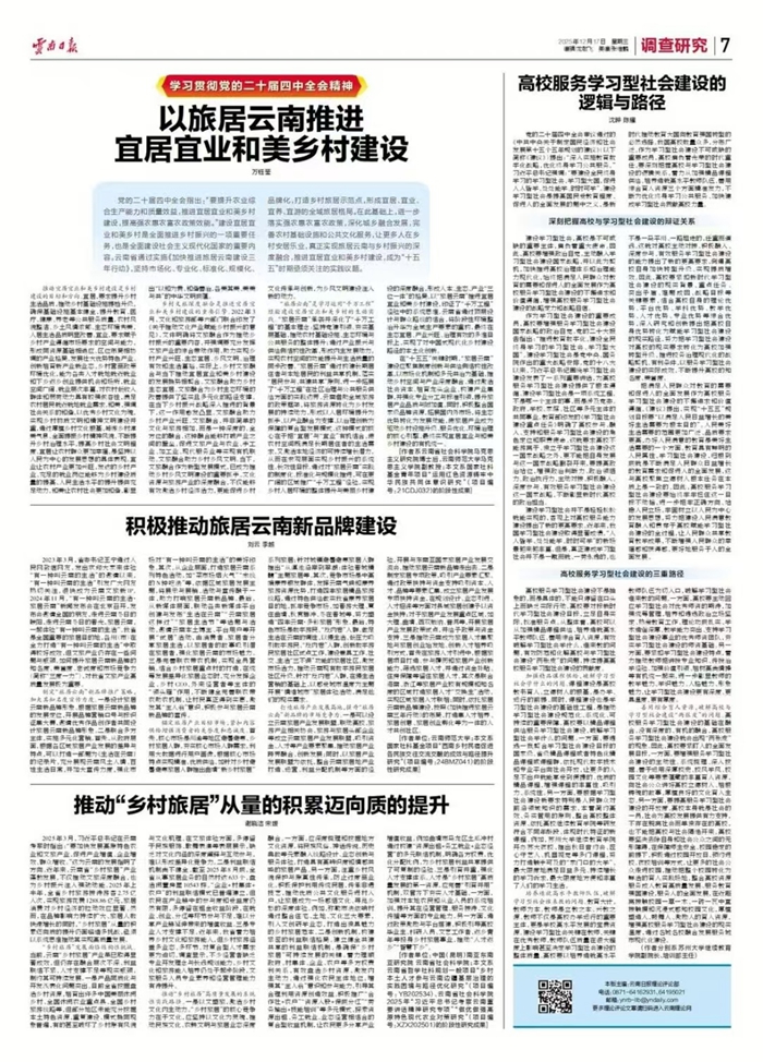 2025年3月,习近平总书记在云南考察时指出:“要加快发展高原特色农业和文旅产业,促进产业增值、企业增效、群众增收。”这为云南的发展指明了方向。近年来,云南省“乡村旅居”产业蓬勃发展,不仅推动文旅深度融合,也为乡村振兴注入强劲动能。2025年上半年,全省乡村旅游接待游客2.75亿人次,实现旅游花费1288.86亿元,旅居消费对乡村经济的拉动效应显著。然而,在品牌影响力持续扩大、旅居人数快速增长的同时,“乡村旅居”从量的积累迈向质的提升仍面临诸多挑战,亟须以系统思维推动其实现高质量发展。